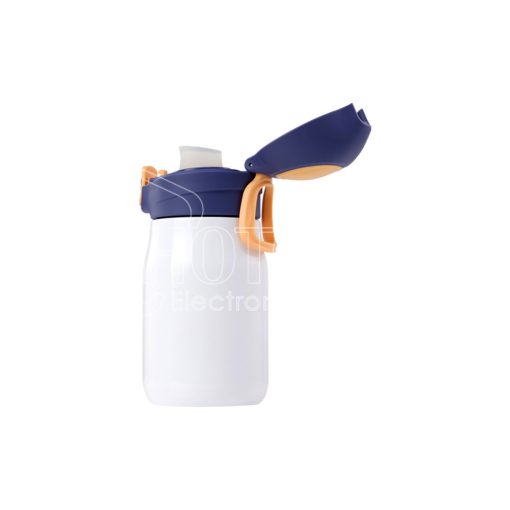 This custom kids water bottle features a very cute colorful flip-top lid. It has a little loop handle that allows the kid to carry the bottle around easily. Moreover, the food-grade plastic lid also has a super soft silicone spout which is quite comfortable for kids to drink from.