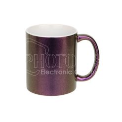 The outside of the mug applies a purple neon glow paint finish that can glow in a light just like the neon glow and also has a distinct metallic luster. The finish will shift colors as the light direction changes, so your transfer image will change its look accordingly when you move the mug around in your hand.