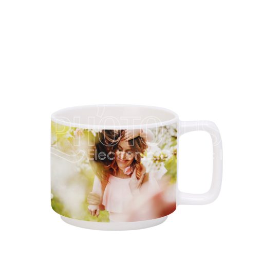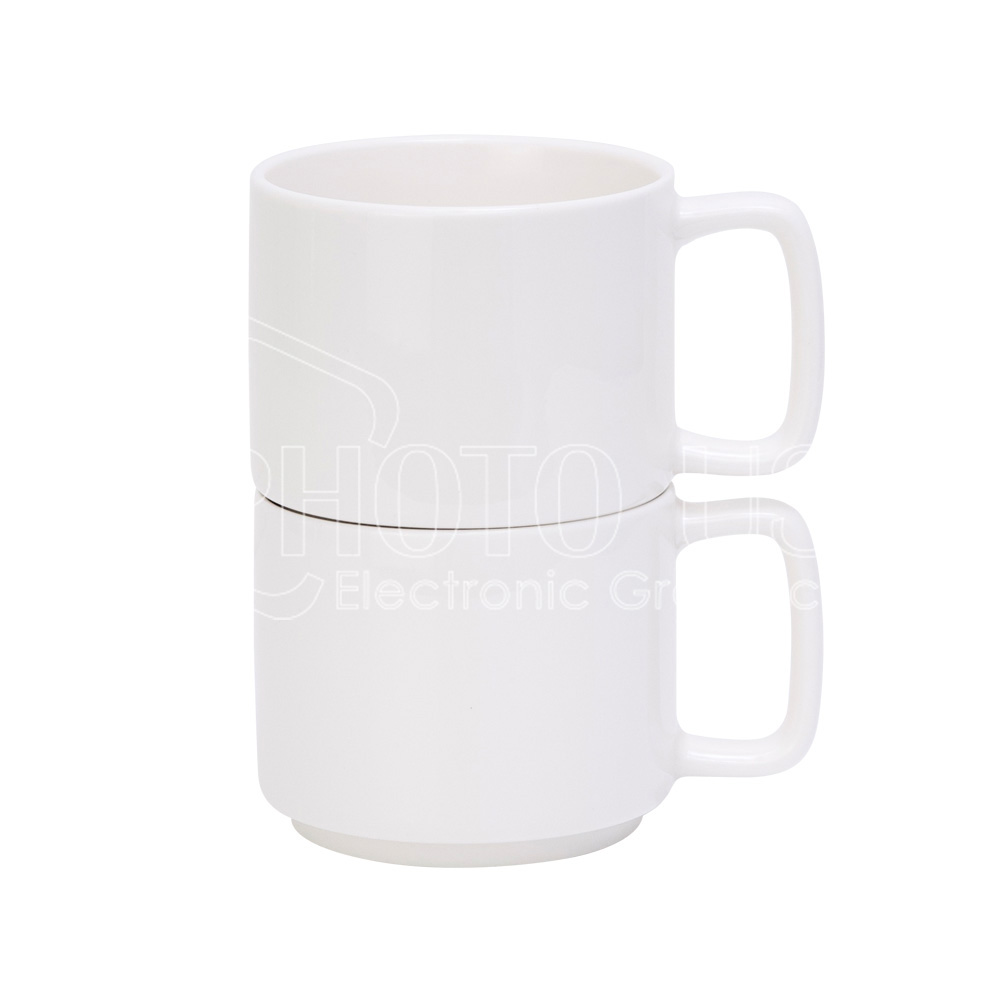 This 11 oz sublimation stackable coffee mug features a chic square handle and has an attractive modern silhouette. The stylish look makes it an ideal serving mug option for bars & restaurants, as well as every modern home.