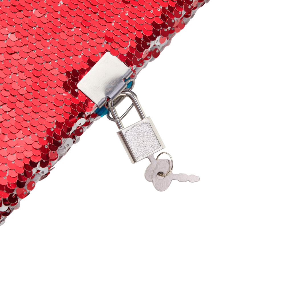 This reversible flip sequin notebook features a side lock that can only be accessed using the matching key, ensuring that your private thoughts remain secure and protected. functioning as a reliable guardian of your thoughts and secrets, thereby ensuring the security of each entry.