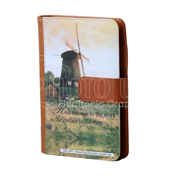 These PU folded loose-leaf notebooks are quite durable and reliable. Coming in black and brown, they can be personalized by sublimation printing any preferred images on the front cover. With a personalization accent, these notebooks would be ideal items for personal use or public events such as promotion events or in-house awards.