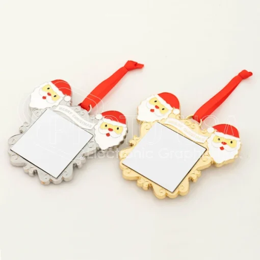 This custom Christmas ornament is made of zinc alloy. It features a vibrant embossed Santa border design and also has MERRY CHRISTMAS text on the top. Besides, the ornament also comes with a red ribbon for easy hanging.