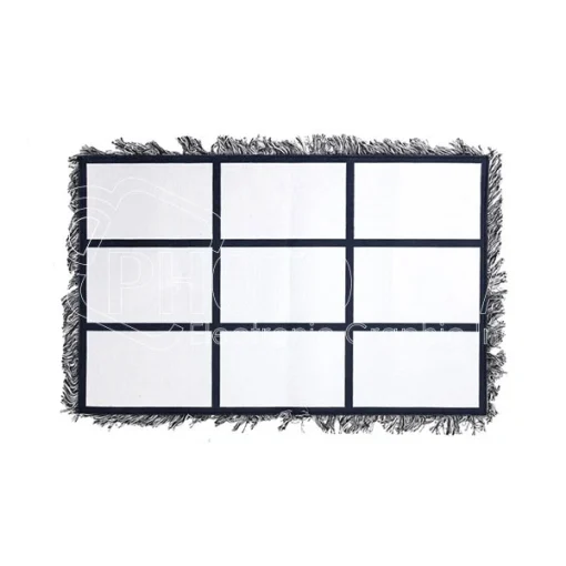 The sublimation 9-panel fringe area rug features 9 white blank panels on the black front side while the back is brown, so the rug allows you to imprint up to 9 of your favorite photos, designs or whatever you want, to turn it into a stunning oversized photo collage frame to show your best memories or loved ones at home.