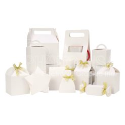 This collection includes 12 styles of gift boxes that are made in varied shapes, sizes and designs. There are square gift boxes for packing mugs and water bottles, pillow and star shapes of boxes for packing puzzles and ornaments. Moreover, there is also fun candy-shaped gift box for wrapping candies, trinkets and other small gifts for kids. Some of the boxes are designed with a handy carry handle for easy carry. And some of them, however, are adorned with a shiny gold ribbon that is tied with an elegant pearl. These sublimation blank gift boxes are super cute and lovely, and they can satisfy a wide range of packaging needs.