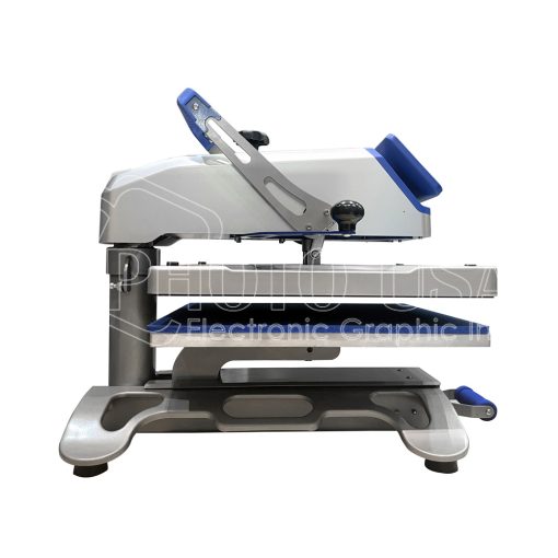 The swing-away heat platen allows for easier placement and more accurate positioning of the substrate. Also, it can prevent accidental burns on your hand when placing or removing the product.